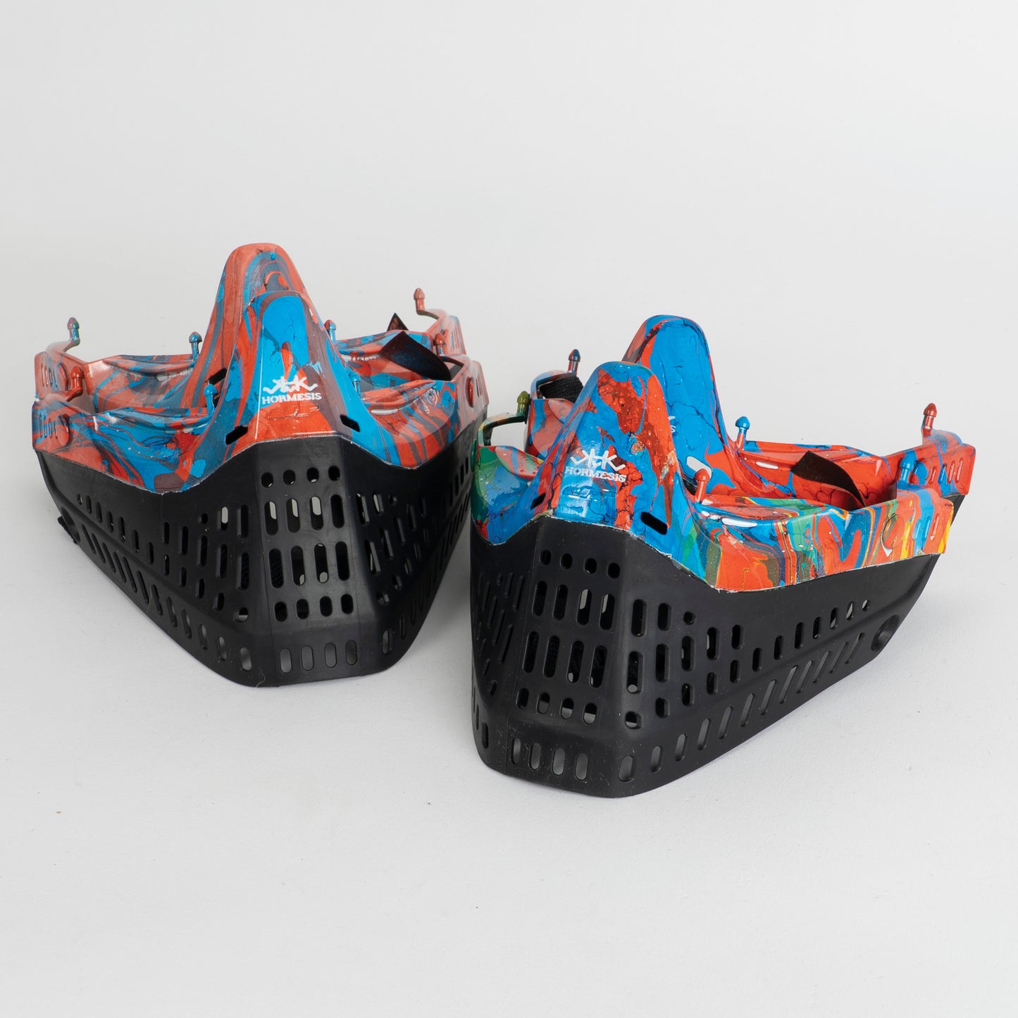Designed and hand dipped and painted by Dom Chi. These custom pro flex bottoms are sure to impress on the field. Complete with chin strap these are compatible with JT proflex goggles. The set pictured may not be the one you receive. There are several similar styles, but each is a bit different.