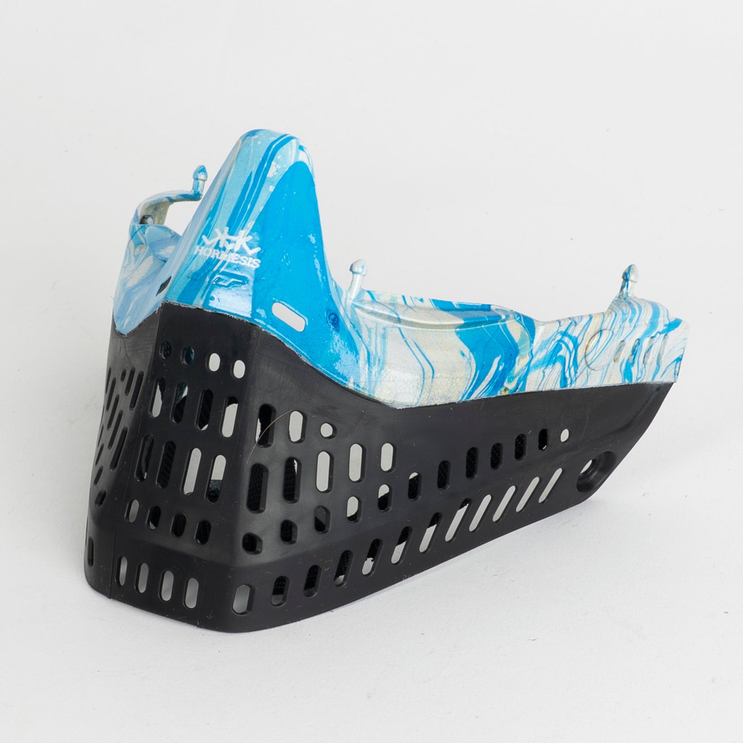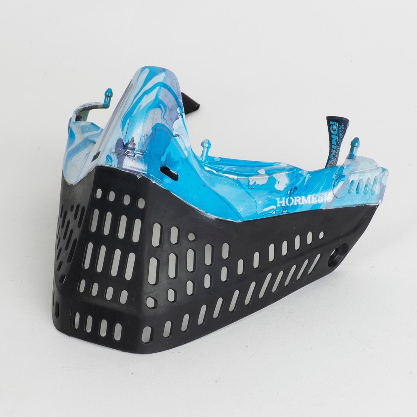 Designed and hand dipped and painted by Dom Chi. These custom pro flex bottoms are sure to impress on the field. Complete with chin strap these are compatible with JT proflex goggles. Each set comes with a DV8 anodized aluminum proflex lid. The set pictured may not be the one you receive. There are several similar styles, but each is a bit different.