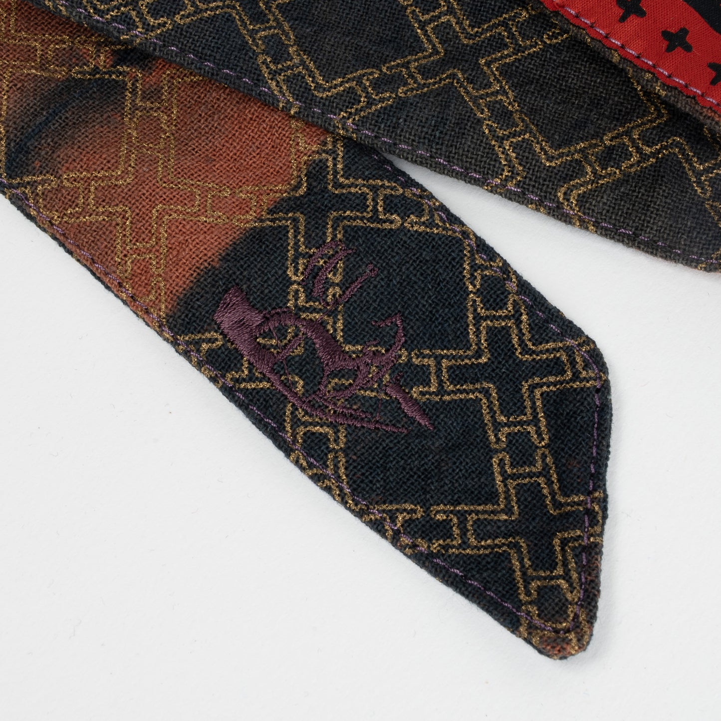 V for Vendetta (Revenge Series), is made of the highest quality organic fabric and dyed with natural or synthetic dyes. The embroidered symbol on the tail signifies that this headband is part of the corresponding set. Each headband is, hand dyed and crafted with care. Hormesis headbands are designed to wear in and season as you gain experience. This band comes with various color stitching, Hormesis signature pattern and Hormesis Red tag.