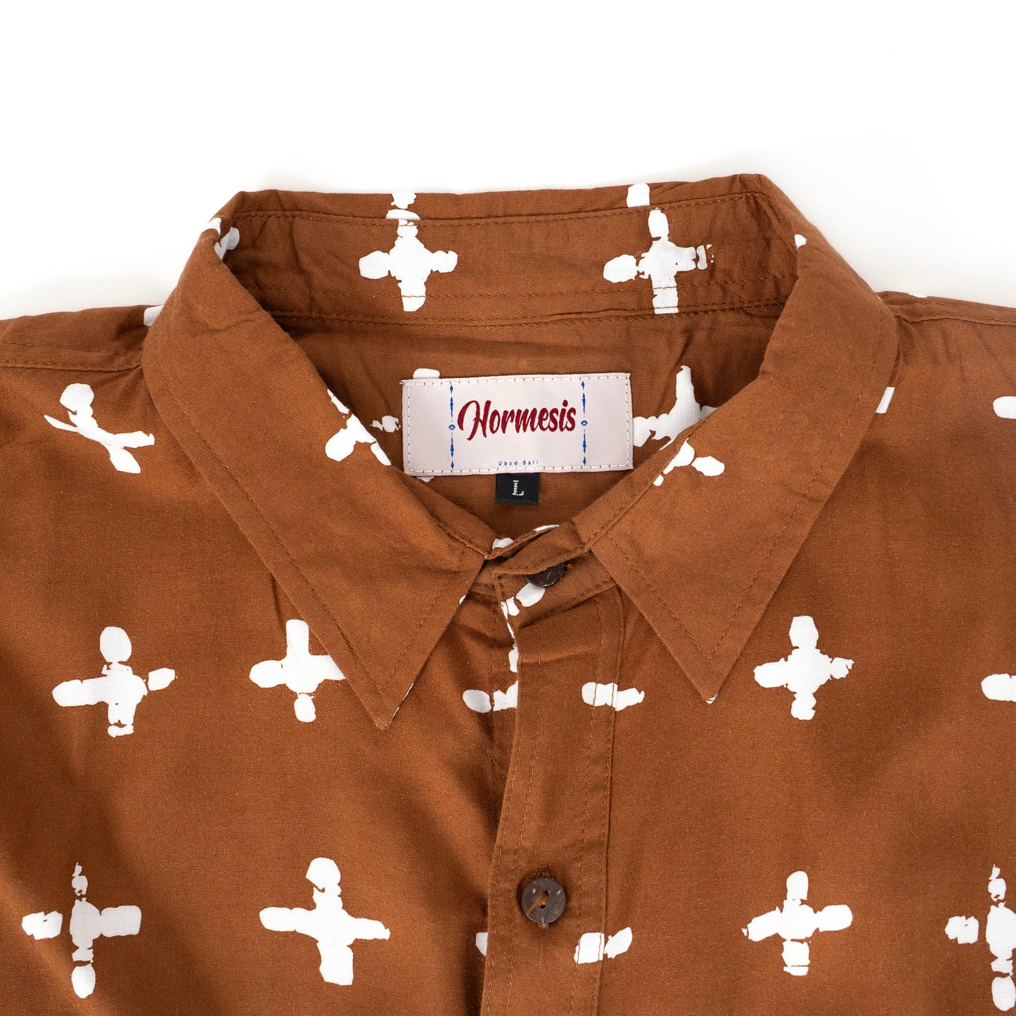 Our clothing line is created using an ancient alchemical technique called Batik, which is an Indonesian heritage art. To create the design, we use a copper stamp known as a "Tjap" that is dipped in beeswax and stamped onto the fabric. The fabric is then dyed using natural dyes made from plants and wood. The beeswax is removed after dyeing, leaving behind unique patterns on the fabric.