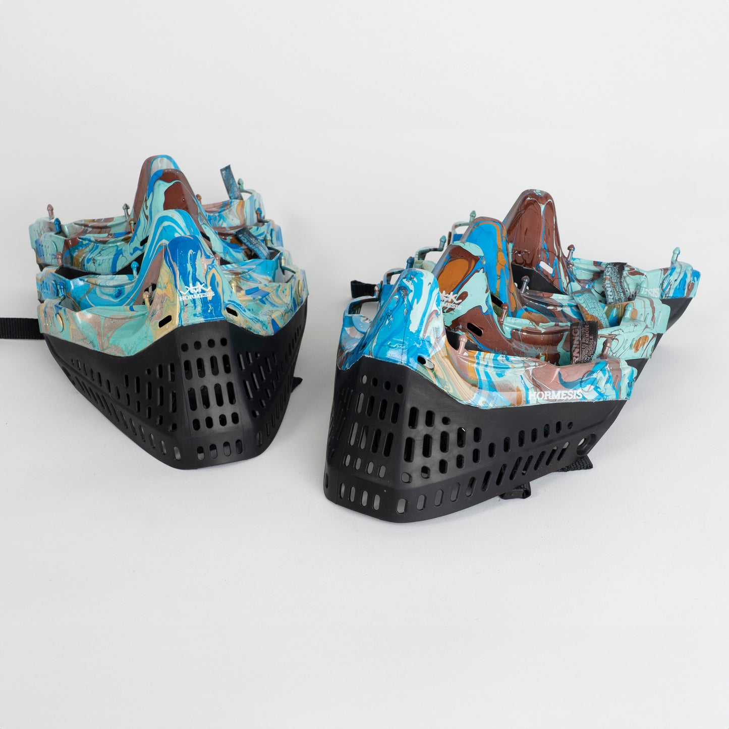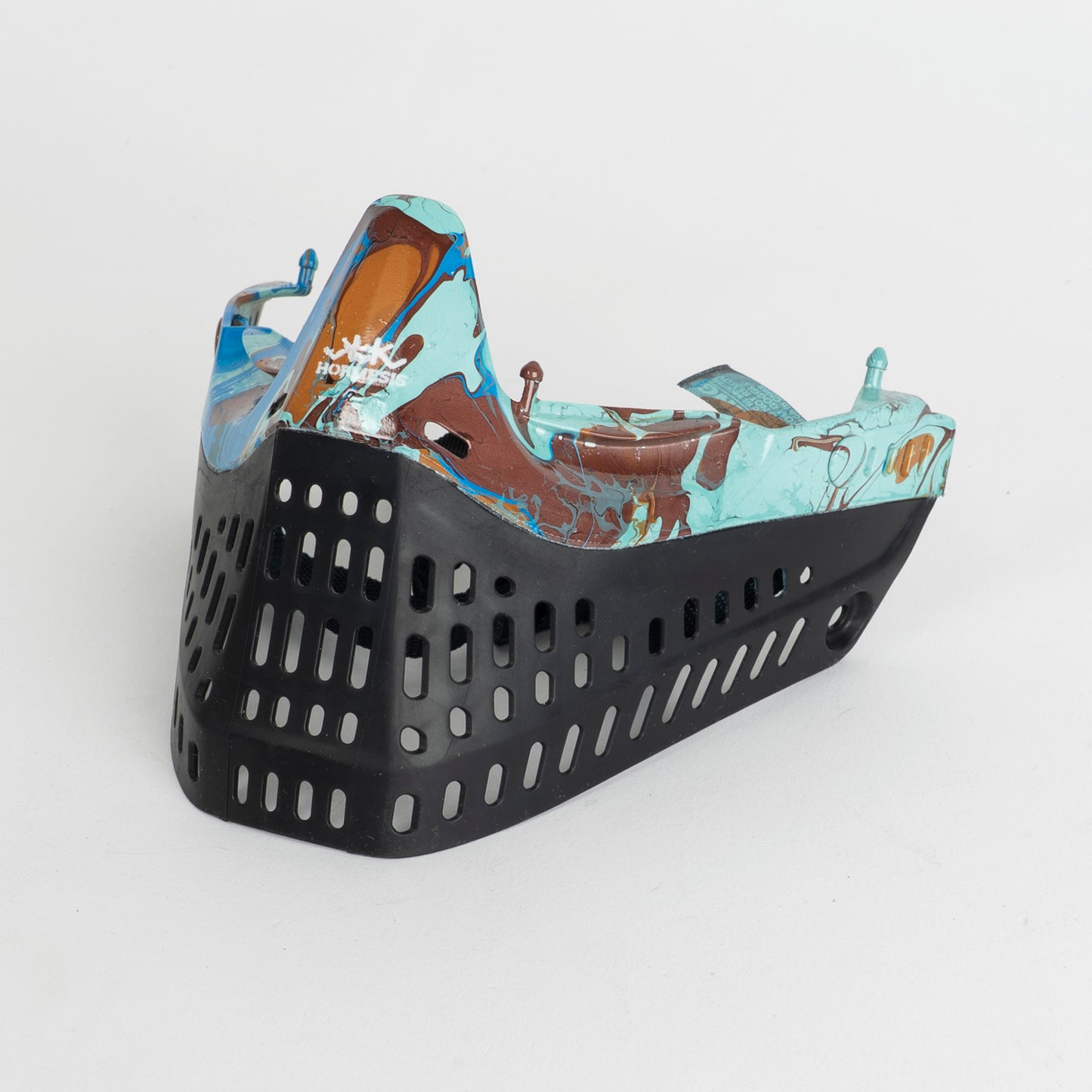 Designed and hand dipped and painted by Dom Chi (9 made). These custom pro flex bottoms are sure to impress on the field. Complete with chin strap these are compatible with JT proflex goggles. Each set comes with a DV8 anodized aluminum proflex lid. The set pictured may not be the one you receive. There are several similar styles, but each is a bit different.