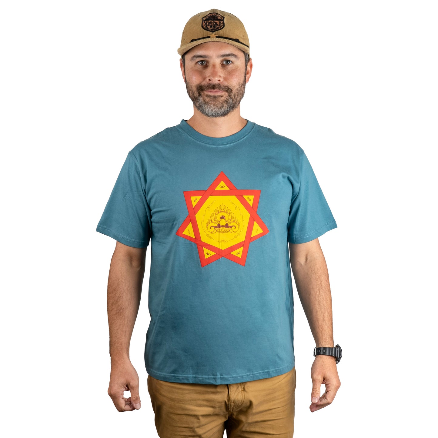 Blue Wheel Red Waves Shirt 100% Cotton Tee